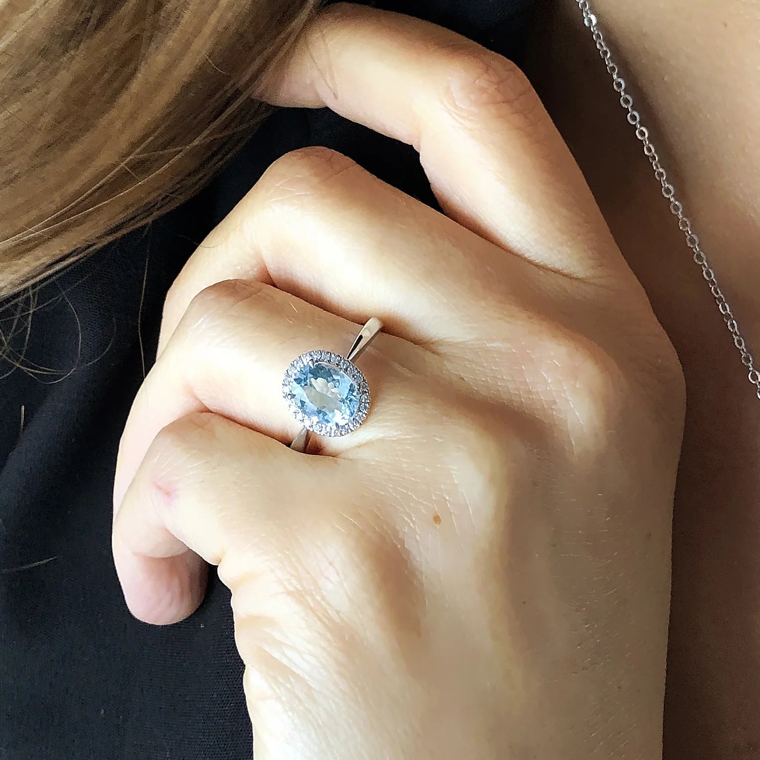 A beautiful 18ct white gold ring featuring a natural emerald-cut aquamarine with diamond-lined shoulders. This is a timeless piece for those who love unique jewellery.