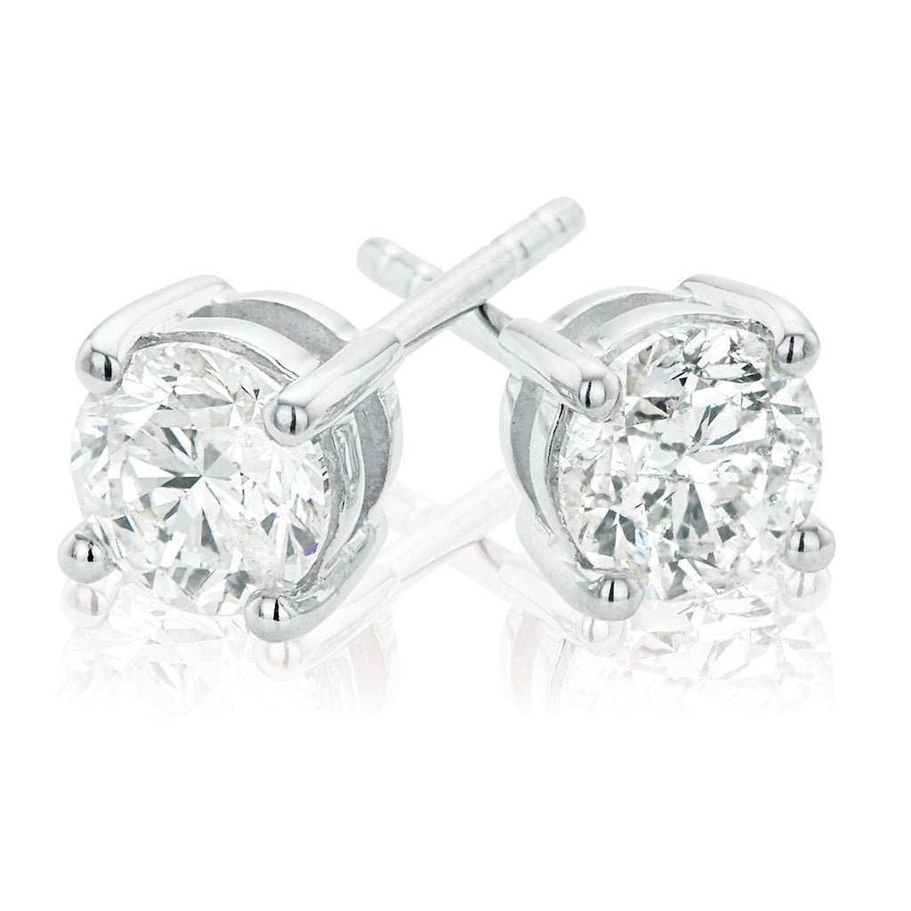 Promise 18ct White Gold Round Brilliant Cut with 2 CARAT tw of Diamonds Earrings