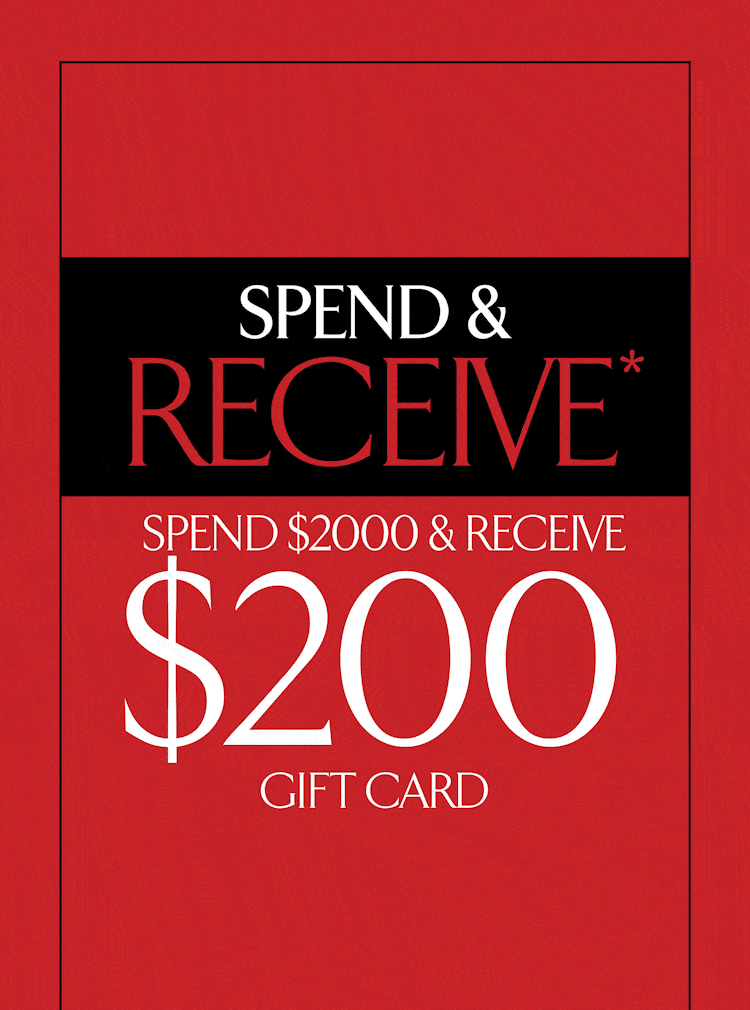 Shop our current sale and receive a gift card valued up to $500 to use later, the perfect fit for the Black Friday weekend or the upcoming gift-giving season.*
