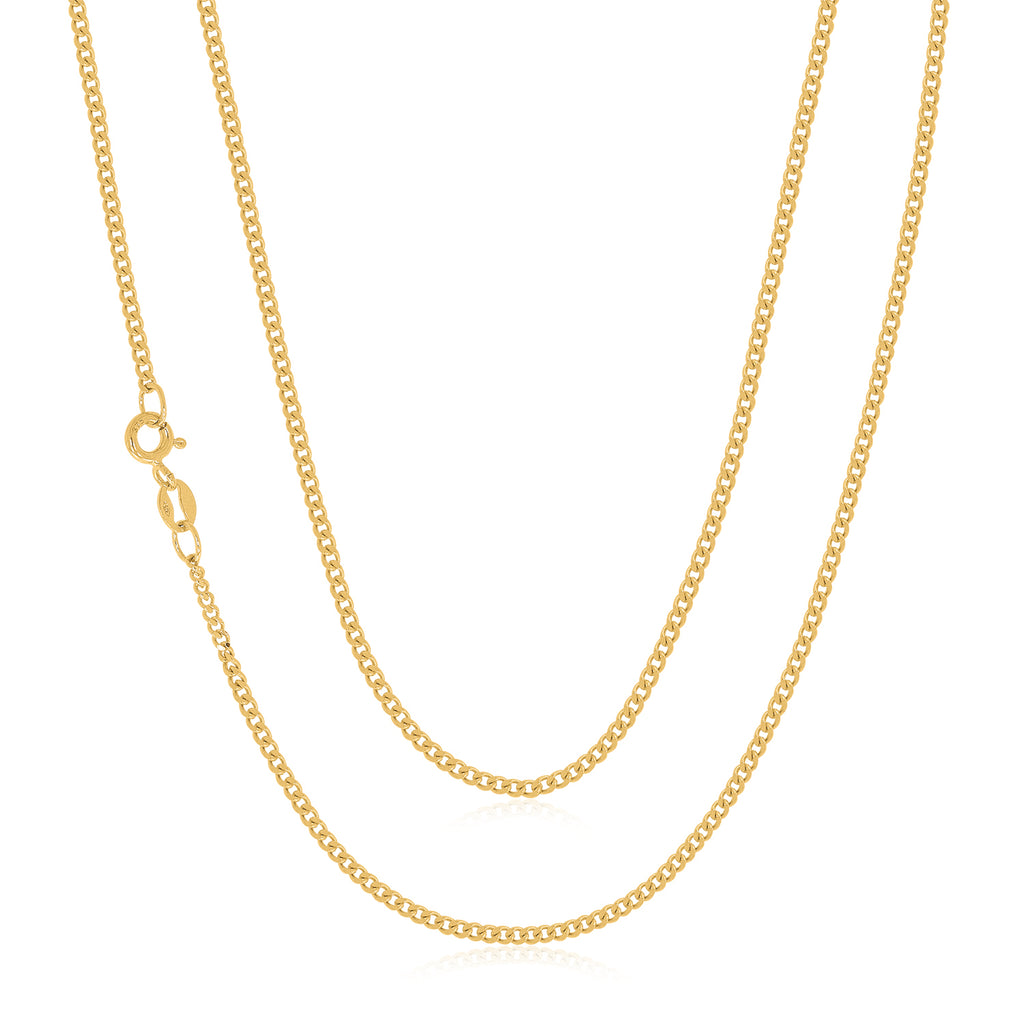 This 9ct Yellow Gold 55cm diamond cut curb chain is an elegant wardrobe essential. Wear on its own for a minimalist look, or pair with a stunning pendant.
