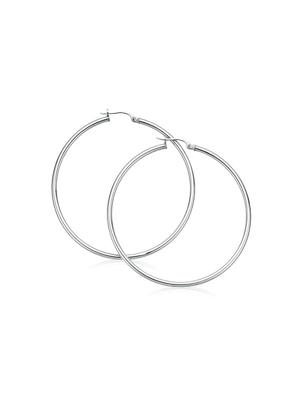 9ct White Gold Round 45mm Polished Hoop Earrings