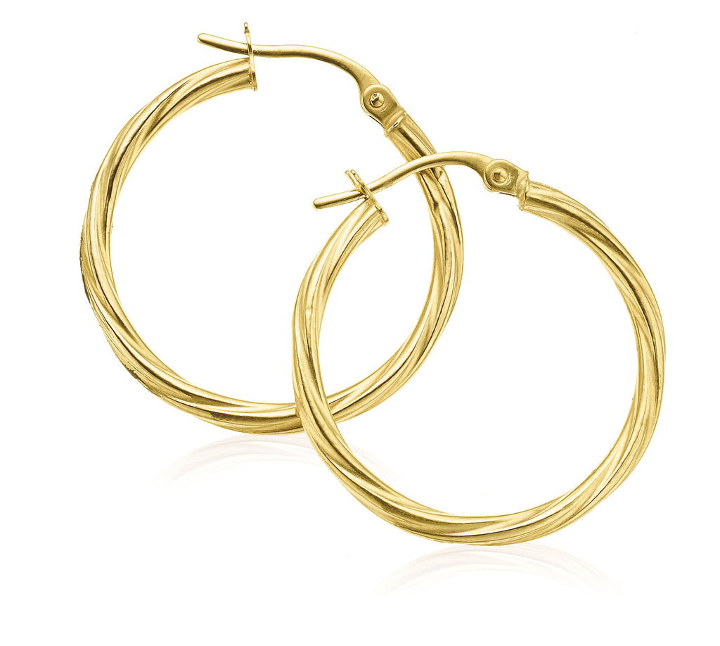 9ct Yellow Gold Round 20mm Twist Hoop Earrings