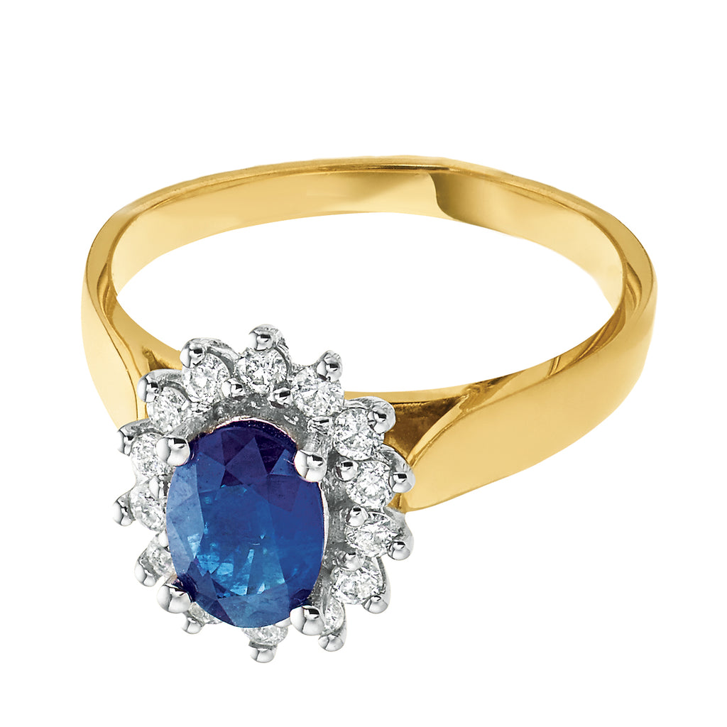 18ct Two Tone Gold Oval Cut Sapphire with 1/4 Carat tw of Diamonds Ring