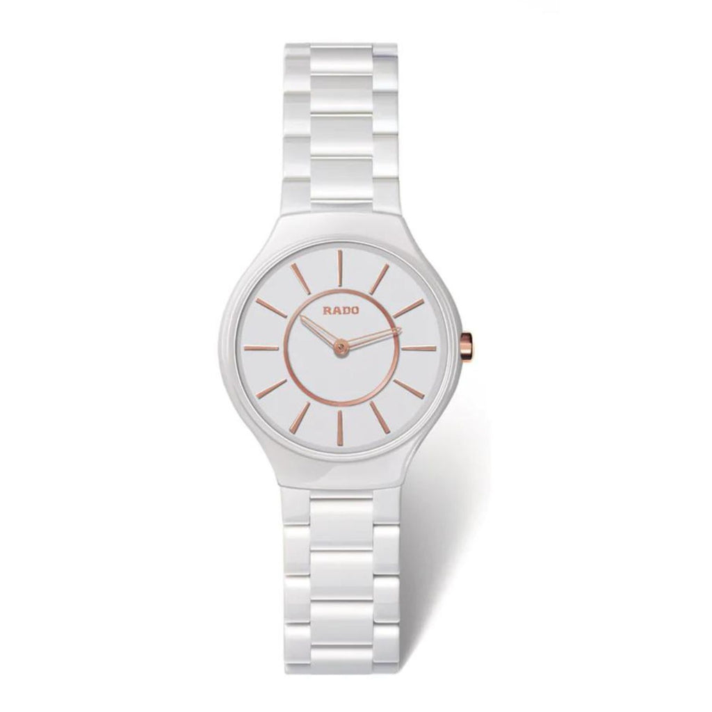 The True Thinline could be considered the ultimate Rado timepiece. First introduced to the collection in 2011, these stunning quartz watches are Rado’s slimmest, the first to feature the groundbreaking monobloc case and are presented in full high-tech ceramic. With lightness, scratch resistance and wearer comfort guaranteed, they are designed to stand the test of time.
