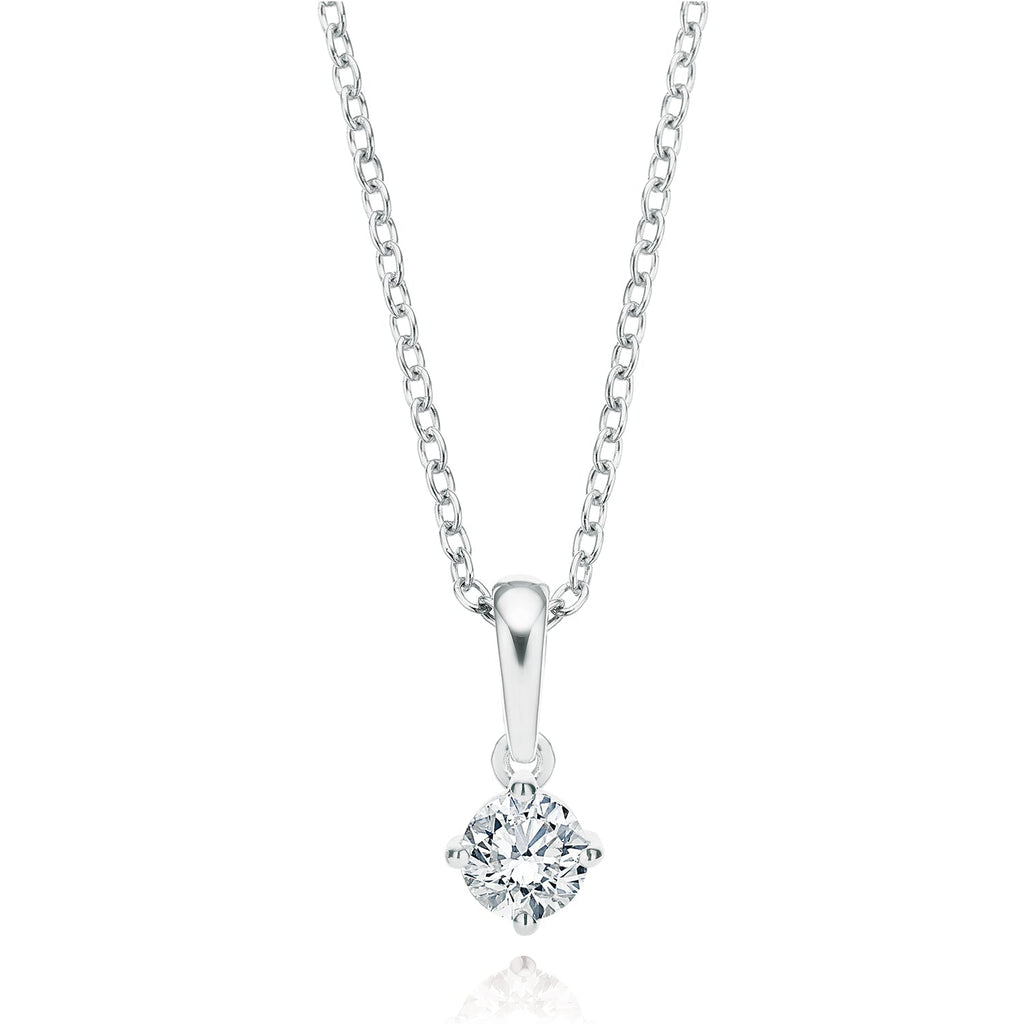 This Classic diamond pendant from our Promise Collection features 1/3 Carat Solitaire diamond set with four claws in 18ct White Gold.