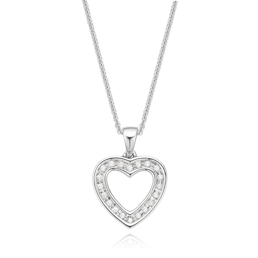 Simple and sweet, this heart pendant is full of thoughtful charm. Crafted in 9ct White Gold, this open heart is set with round brilliant cut shimmering diamonds. Also available in 9ct Yellow Gold.