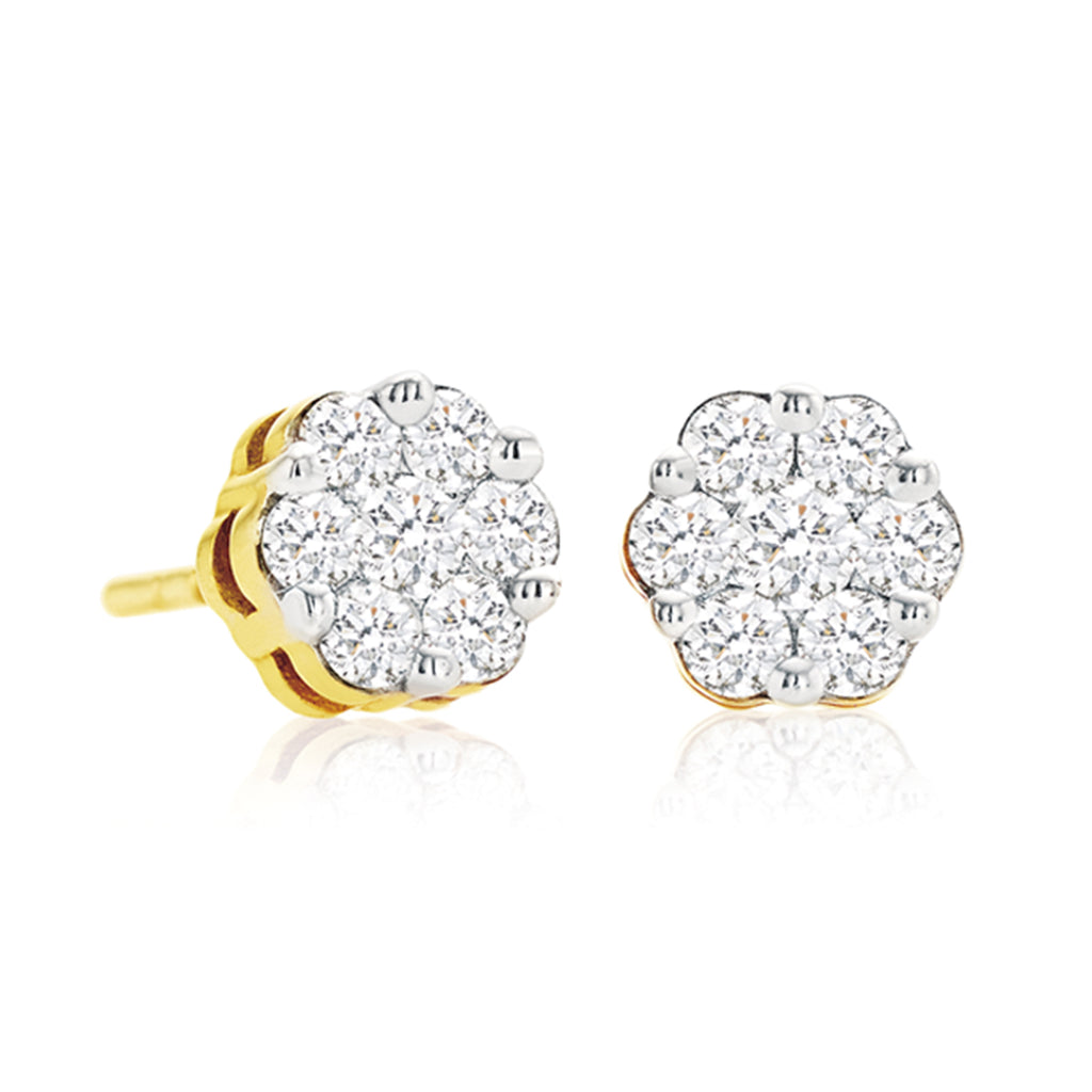 Crafted in 9ct gold, these cluster stud earrings feature seven round brilliant cut diamonds set on each side. With a total of 1/2 Carat of diamonds, this design is timeless and classic.