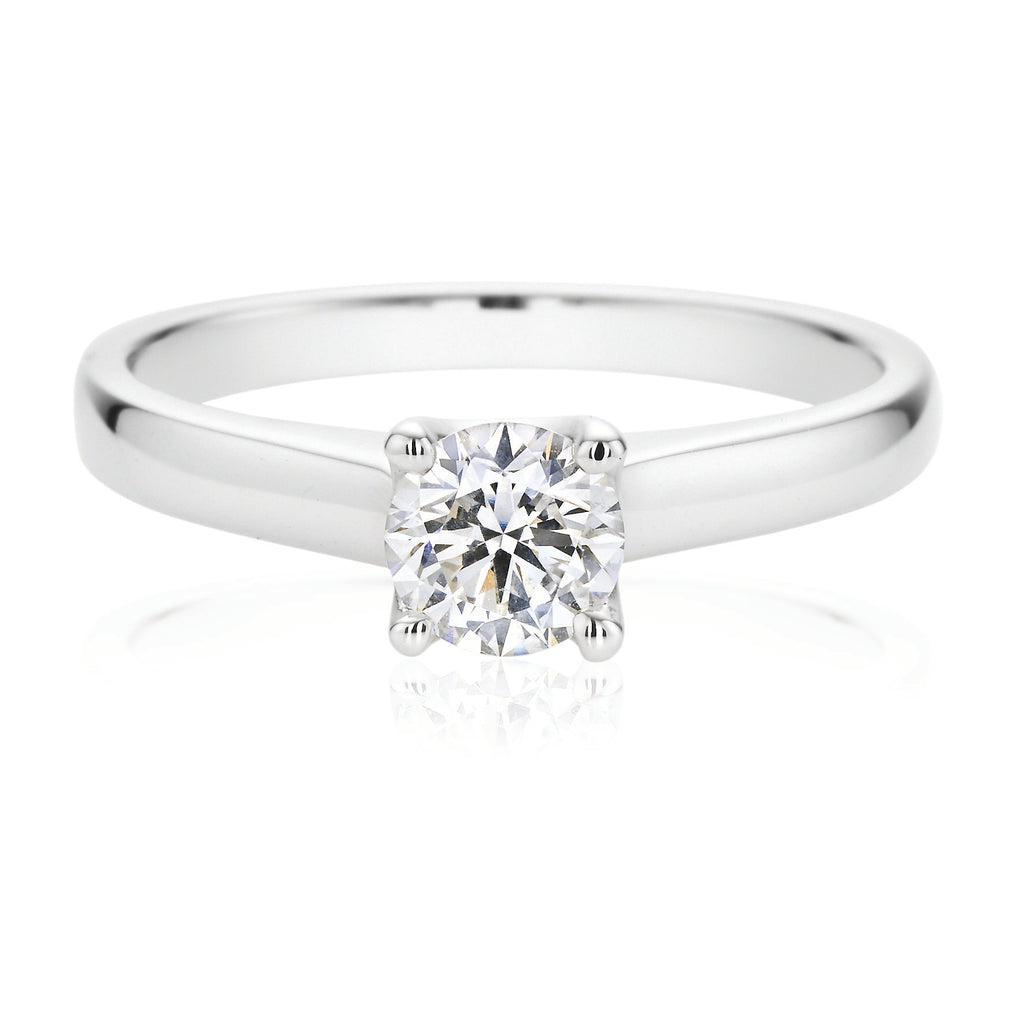 This refined ring features a certified 0.50 carat round cut diamond set in lustrous 18ct white gold. Its sophisticated design offers a sleek and timeless expression of elegance, ideal for marking meaningful moments or enhancing everyday style with subtle luxury.
