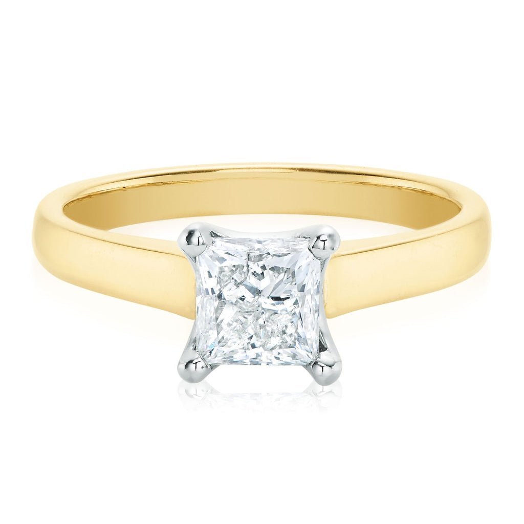 Promise 18ct Yellow & White Gold Princess Cut 1.00 Carat Certified Diamond Ring