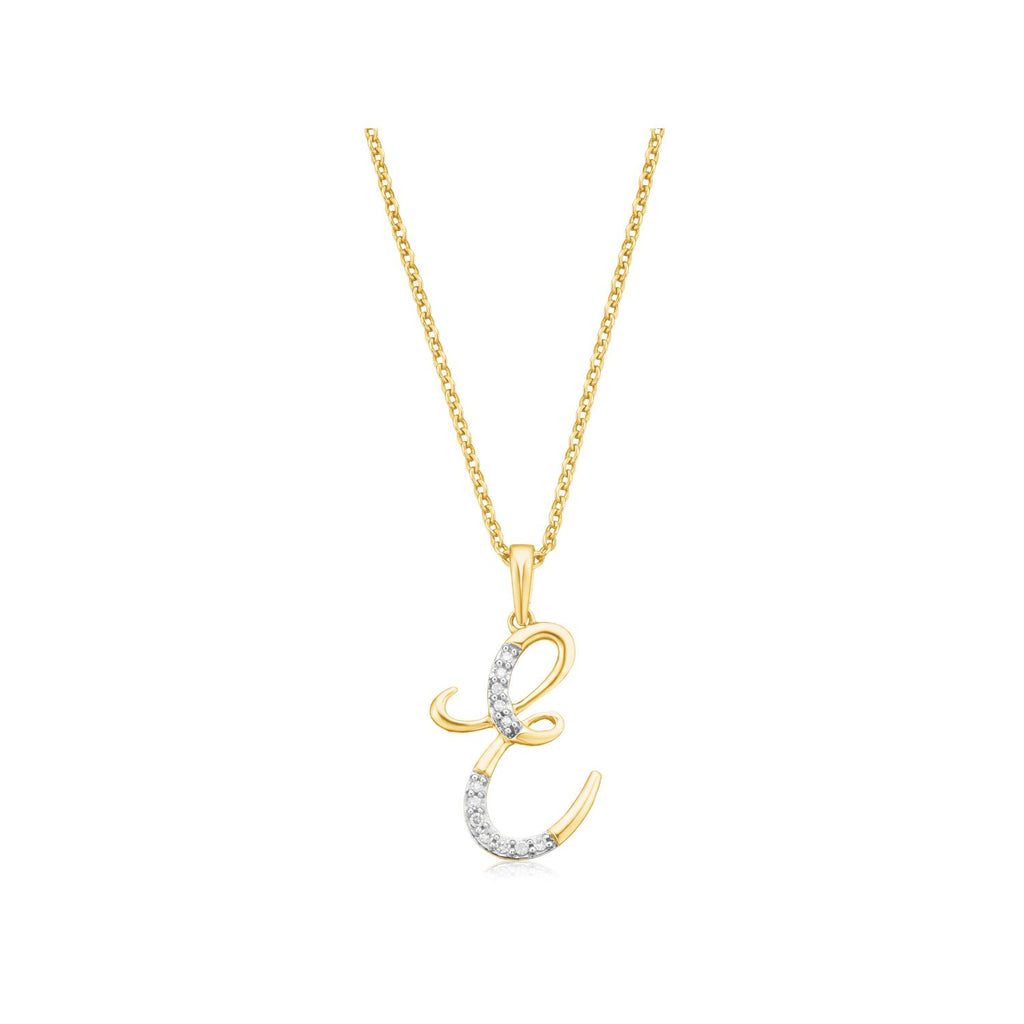 9ct Yellow Gold Round Brilliant Cut with 0.06 CARAT tw of Diamonds Initial E Pendant