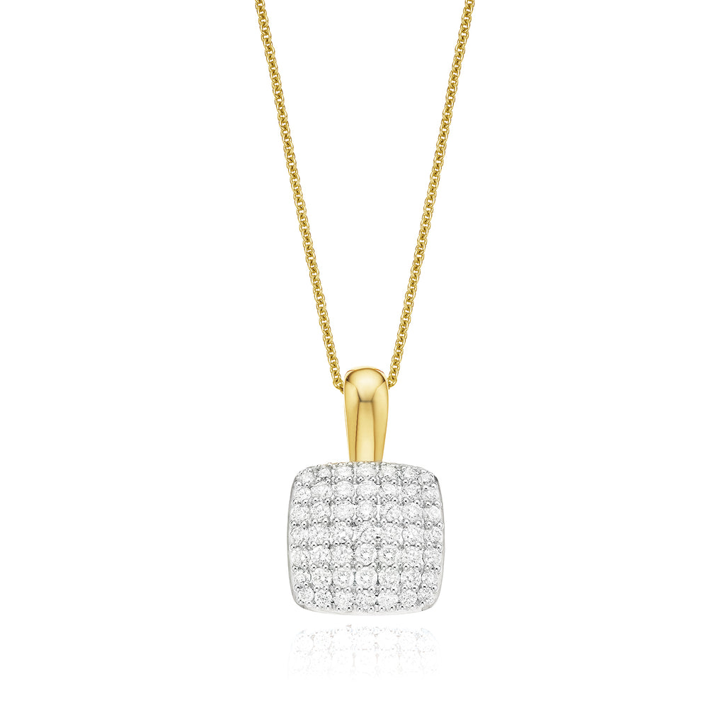 An instant showstopper. This eye-catching square shaped cluster pendant features 1 Carat tw of Round brilliant cut diamonds that are set in 18ct Yellow Gold. Make an even bigger statement by adding the matching ring and earrings.