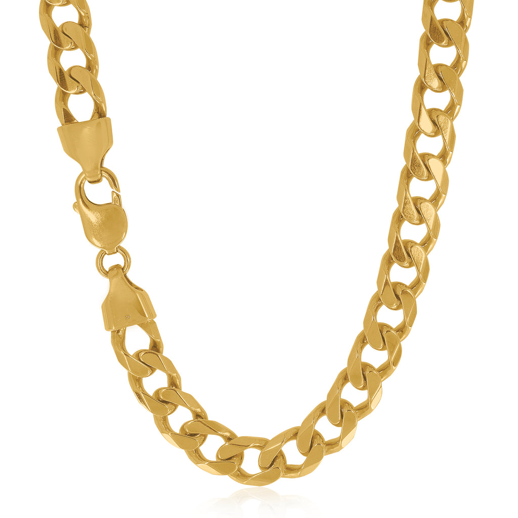 Crafted in 9ct Yellow Gold, this men's curb chain features iconic bevelled diamond cut 9mm links. Measuring 55cm in length, this classic chain secures with a lobster claw clasp. Also available in 18ct Yellow Gold.