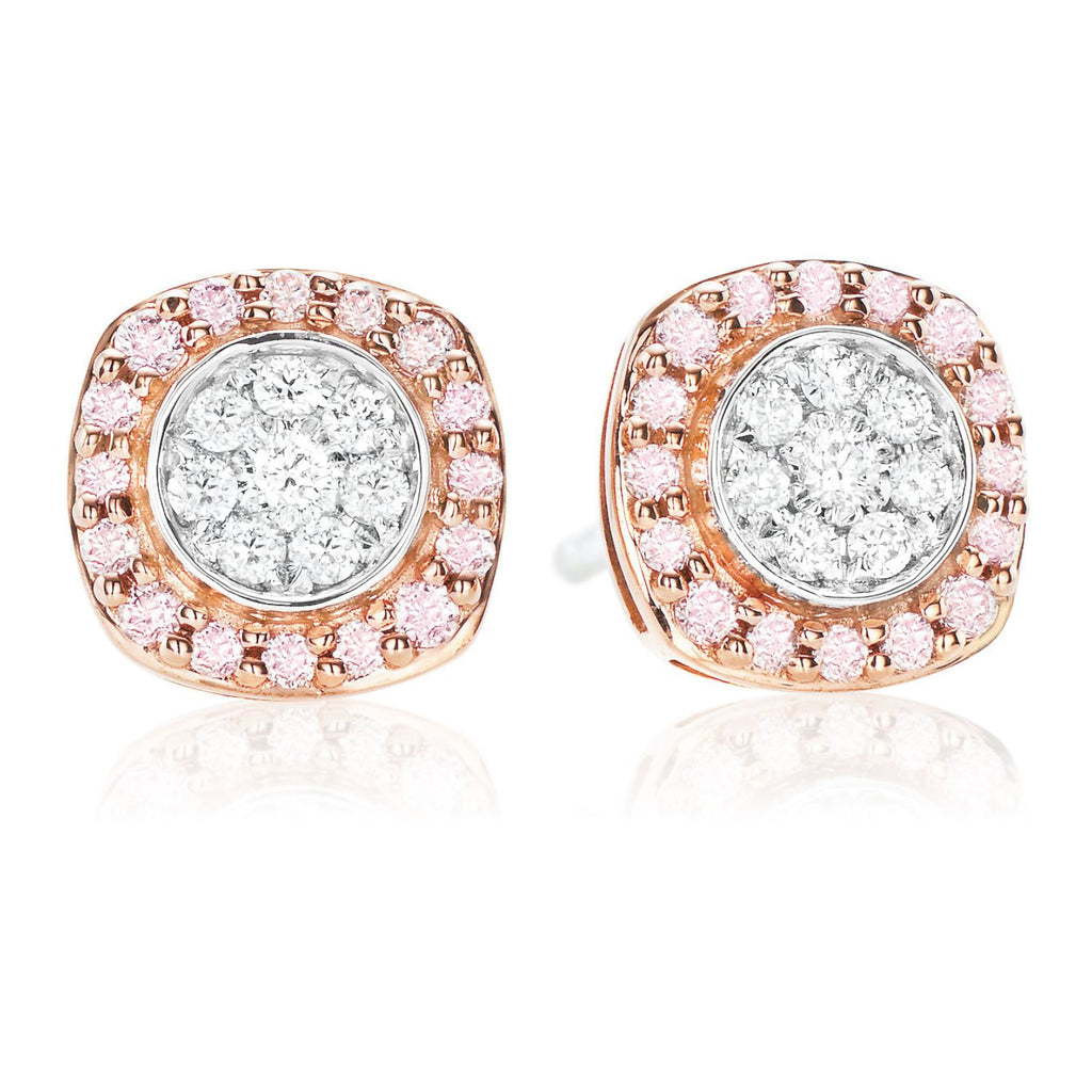 Pink Diamonds 9ct Rose & White Gold Round Cut with 1/4 CARAT tw of Diamonds Earrings