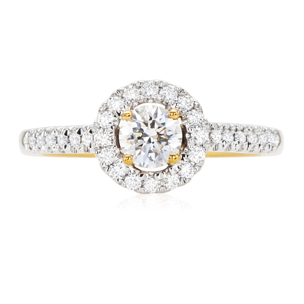 Halo 18ct Yellow Gold Round Cut with 3/4 CARAT tw of Diamonds Ring