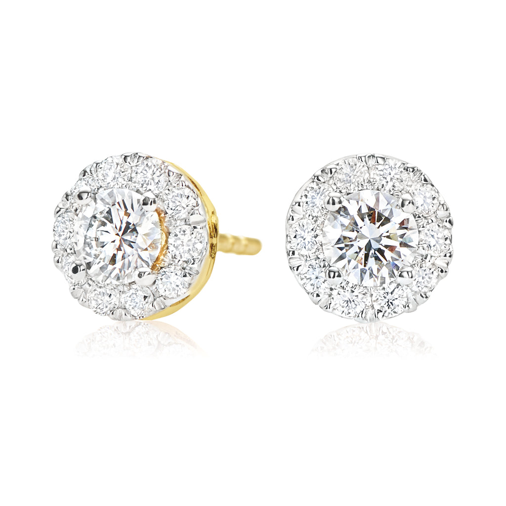 Halo 18ct Yellow Gold Round Brilliant Cut with 0.70 CARAT tw of Diamonds Earrings