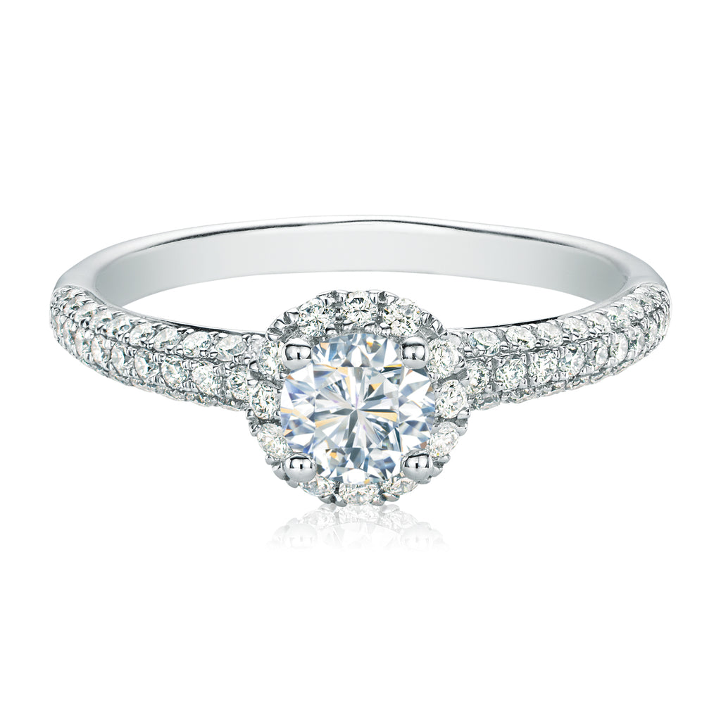 Starring a solitaire Forevermark diamond surrounded by a delicate halo of pavé, the Centre of My Universe™ pavé ring has been designed to embody the woman at the very heart of her world. A feminine and elegant design, the pavé band is anchored in the strength and brilliance of one central Forevermark diamond.