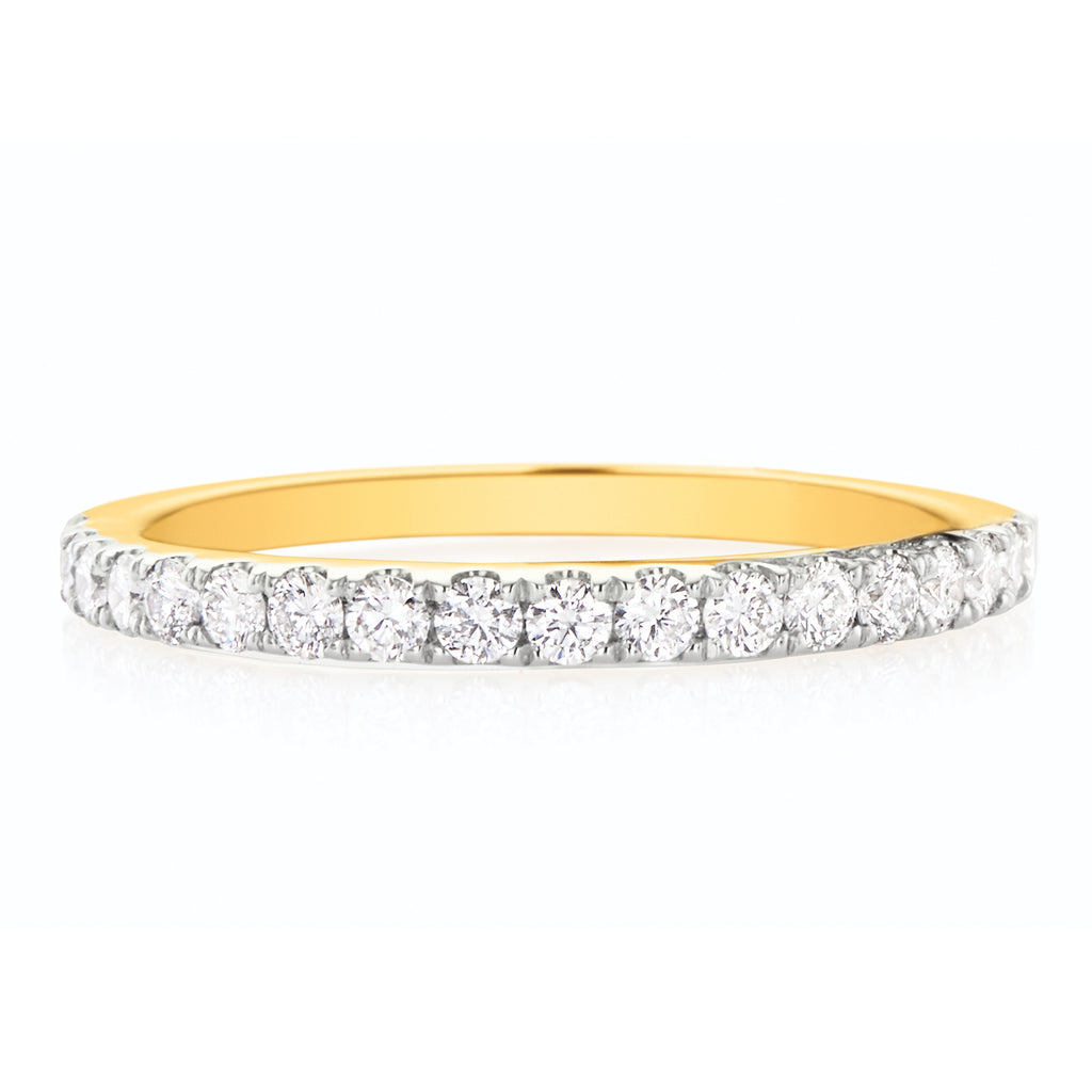 This 18ct Yellow Gold wedding band is set with 0.40 Carat tw of diamonds and is the perfect match to our classic circled Halo engagement ring.