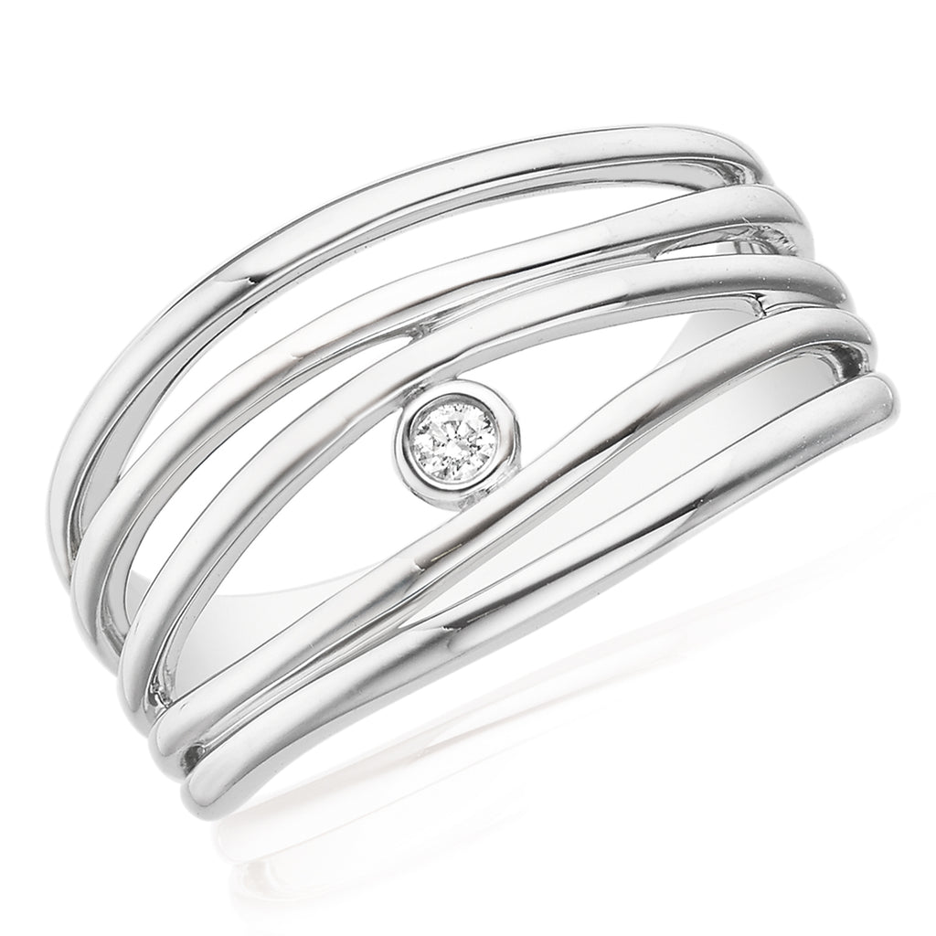 Receive endless compliments when wearing this contemporary style ring featuring five curved strands set in Sterling Silver, adorned with a bezel set of diamond.