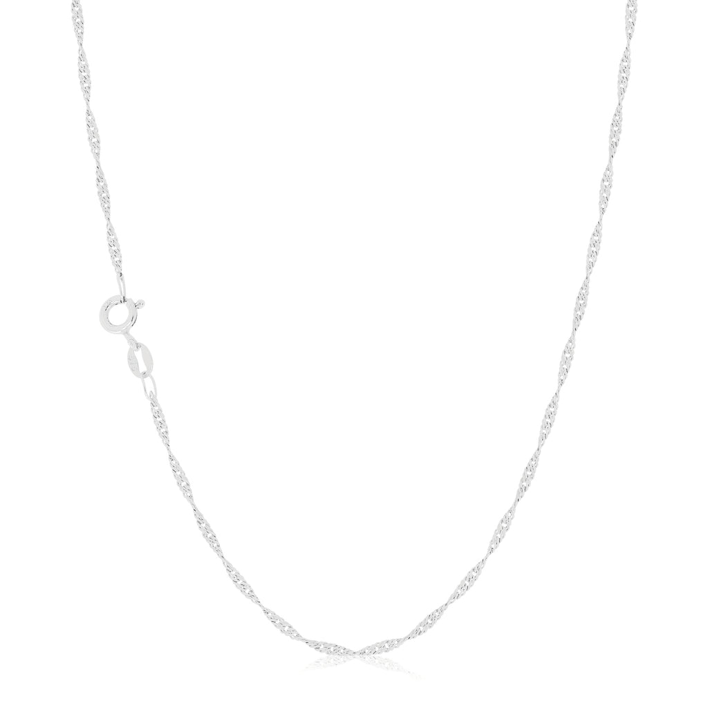 This 9ct White Gold 55cm singapore twist chain is an elegant wardrobe essential. Wear on its own for a minimalist look, or pair with a stunning pendant.