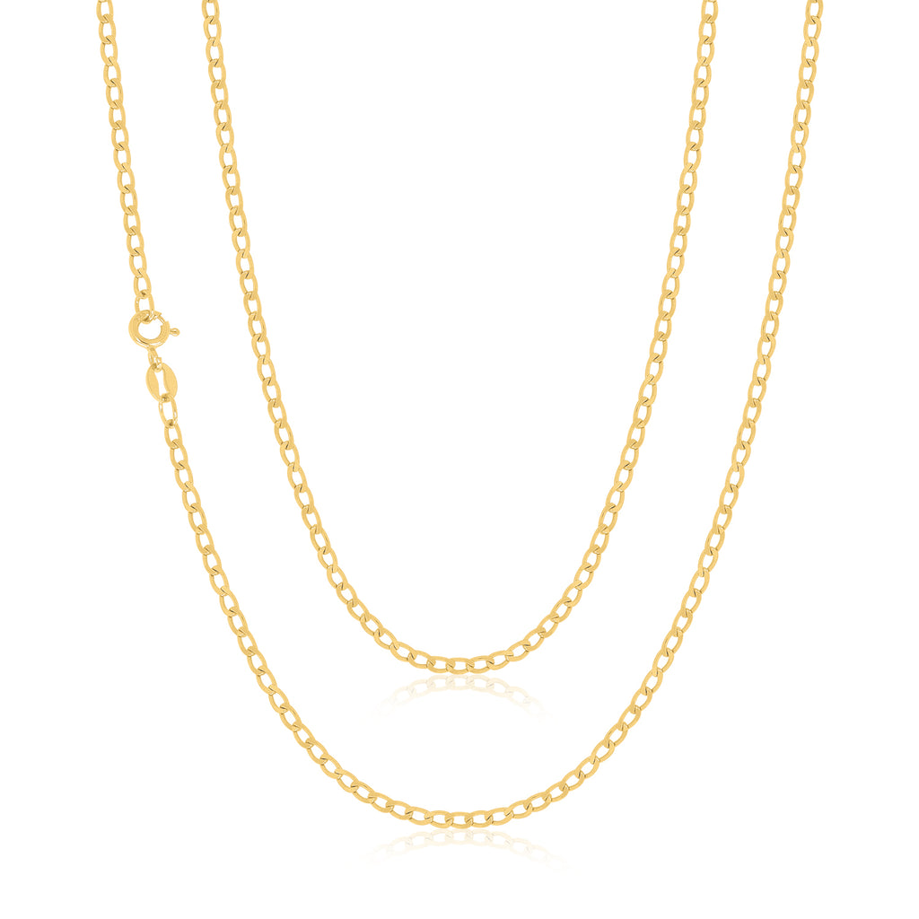 This 9ct Yellow Gold 55cm long curb chain is an elegant wardrobe essential. Wear on its own for a minimalist look, or pair with a stunning pendant.