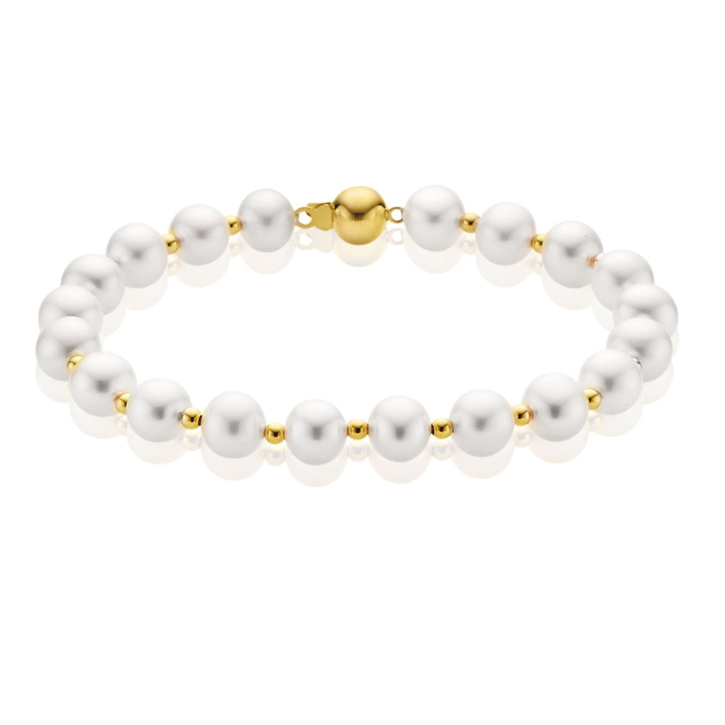 9ct Yellow Gold 7-7.5mm Cultured Freshwater pearl Goldballs 19.5cm Bracelet