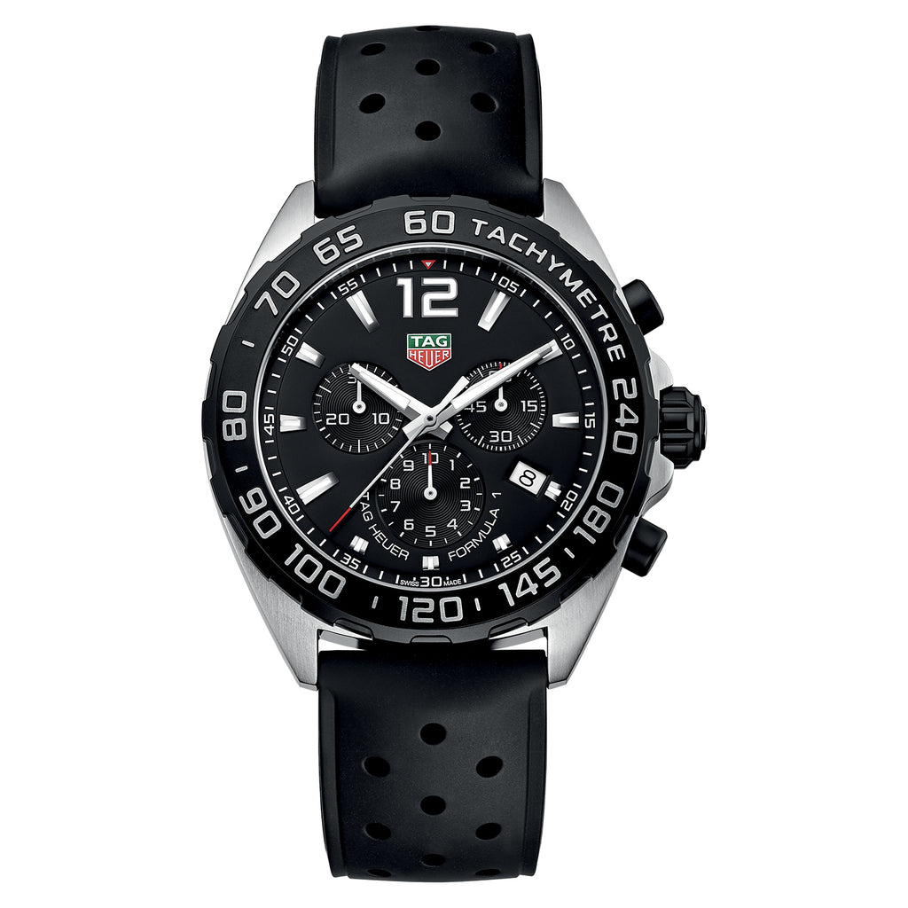 A high-precision quartz racing chronograph with an all-black dial and 200-meter water resistance. Inspired by motor-racing, this robust model is built for speed, endurance and audacity.