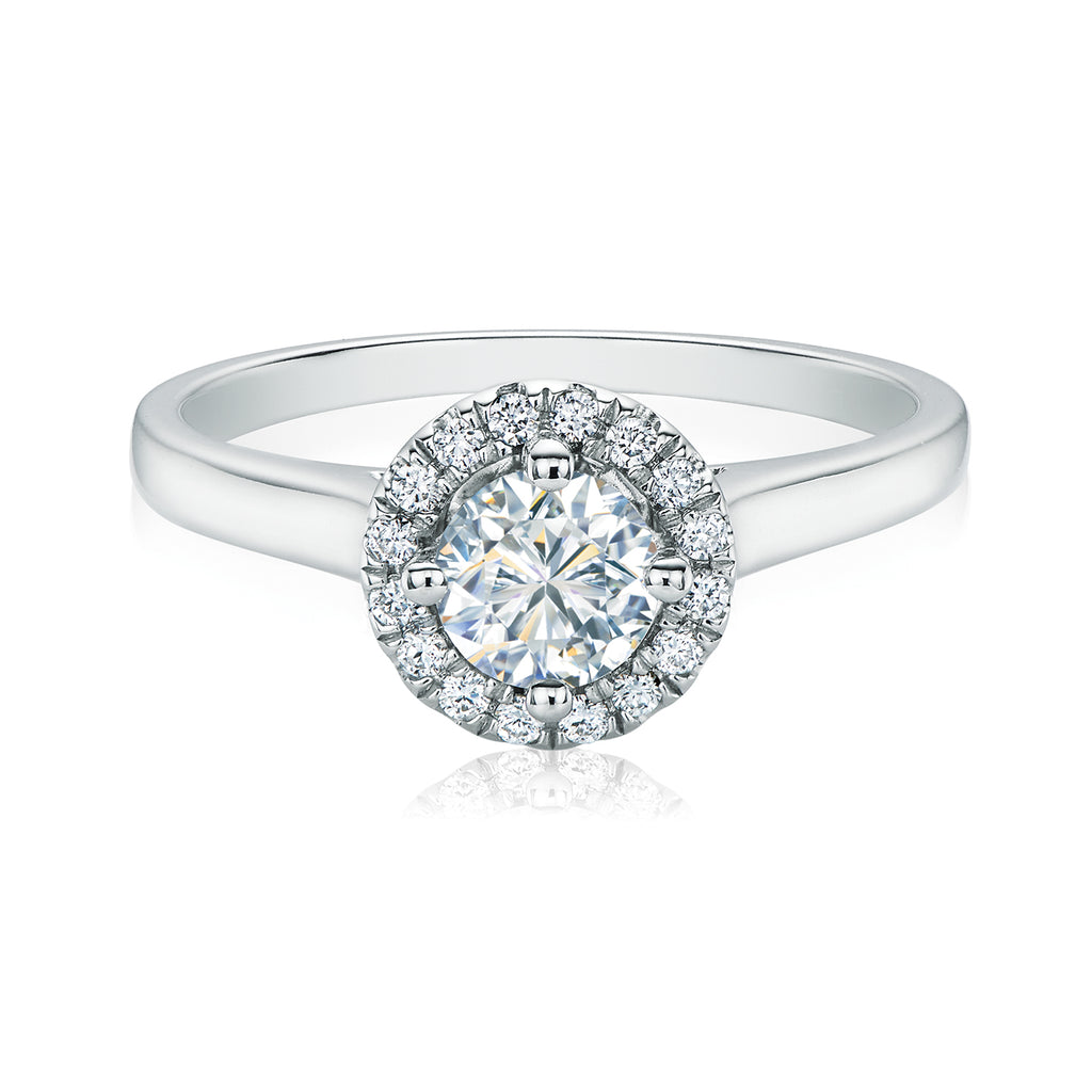 Starring a solitaire Forevermark diamond surrounded by a delicate halo of pavé, the Centre of my Universe™ plain ring has been designed to embody a woman at the very heart of her own world. A feminine and elegant design, the ring is anchored in the strength and brilliance of one central Forevermark diamond.