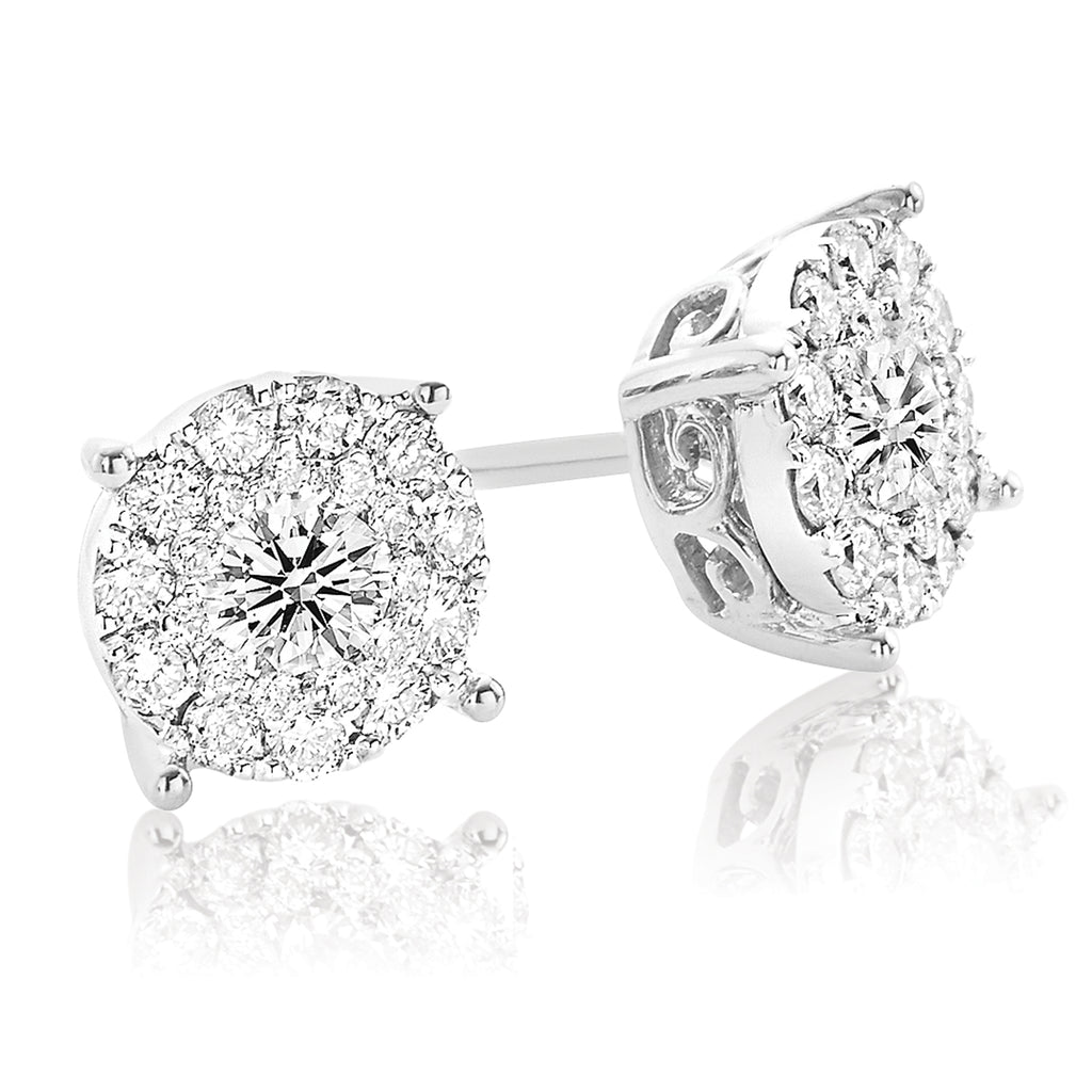9ct White Gold Round Brilliant Cut with 1 CARAT tw of Diamonds Earrings