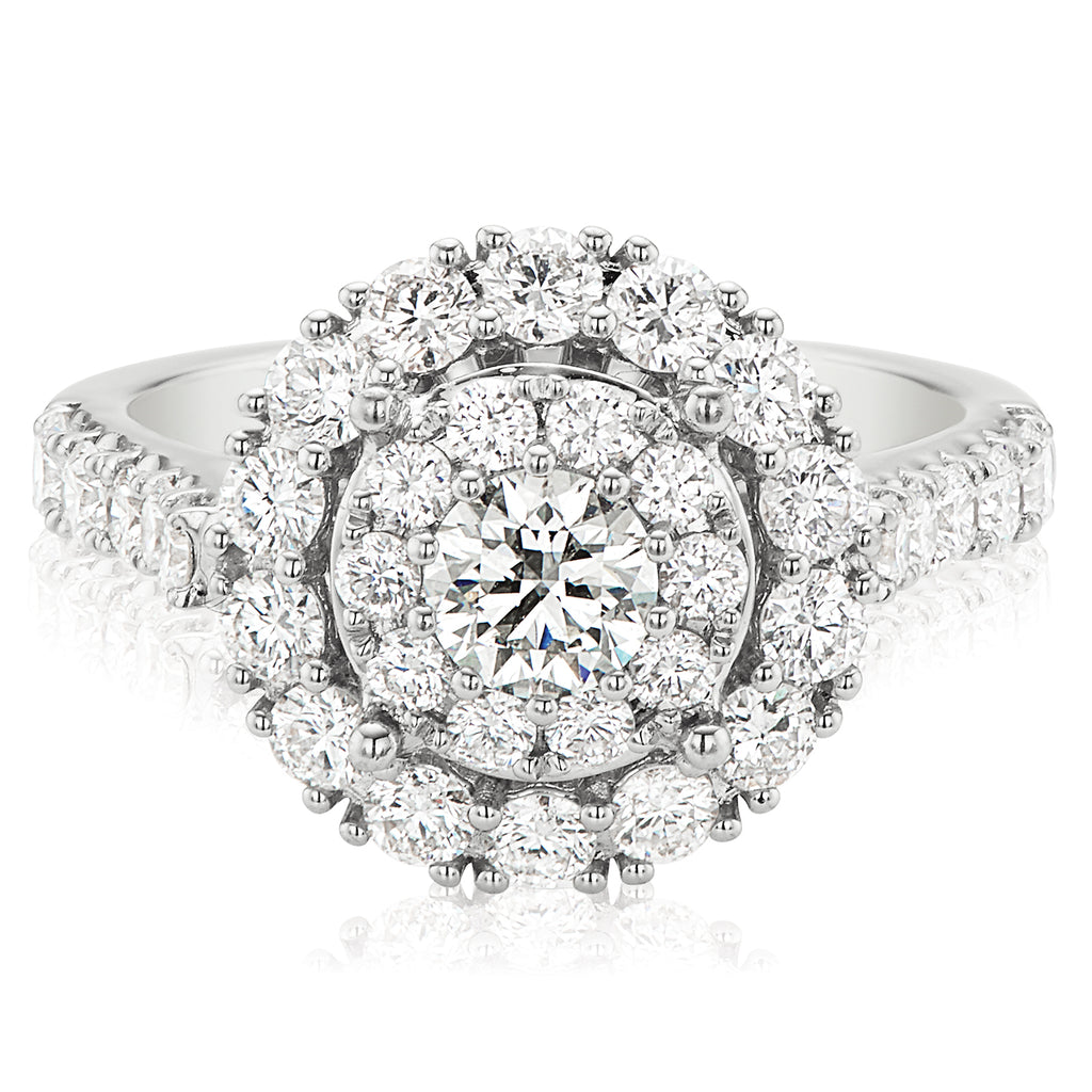 Halo 18ct White Gold Round Brilliant Cut with 1.85 CARAT tw of Diamonds Ring