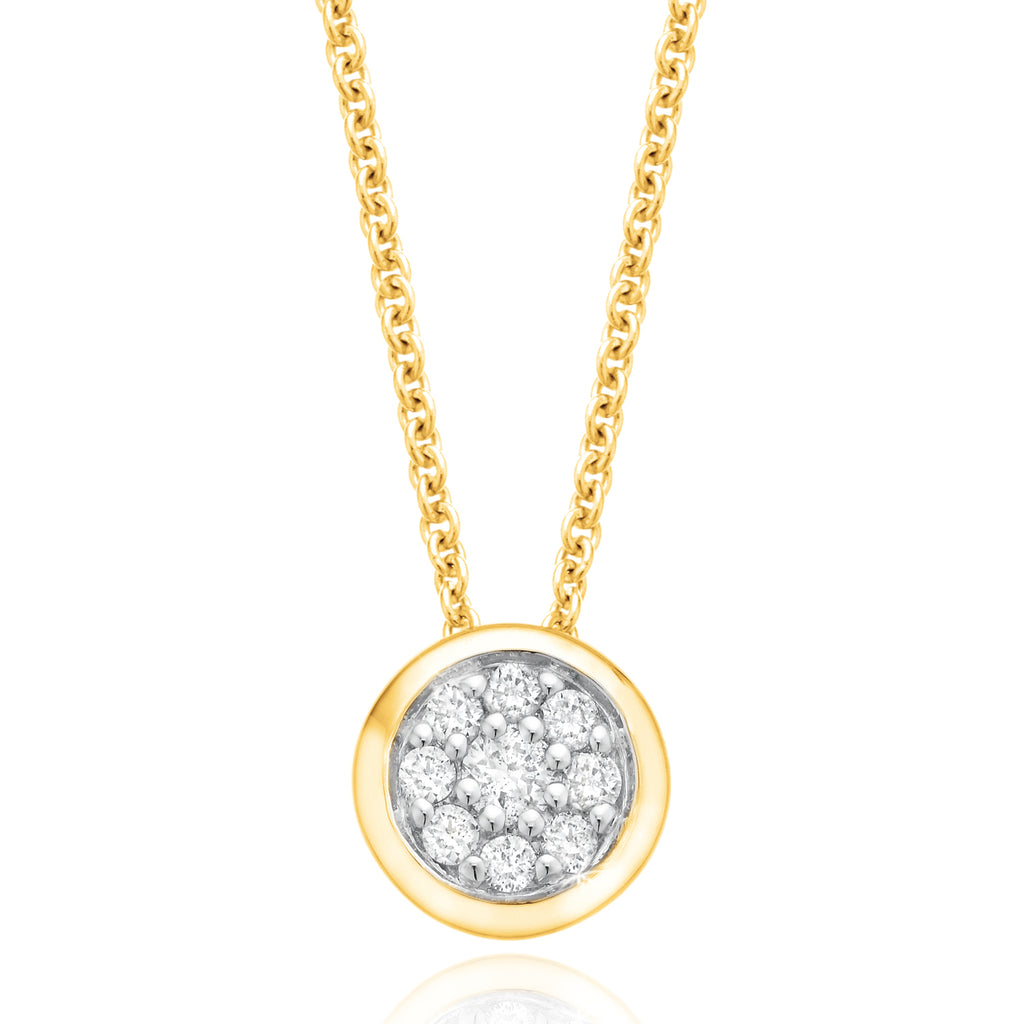 9ct Yellow Gold Round Brilliant Cut 0.12 CARAT tw of Diamonds Pendant