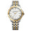 The Tango Classic men’s two-tone gold quartz steel bracelet watch features a stainless steel 41mm diameter round case, gold PVD plated materials, a sophisticated white dial punctuated by gold-plated Roman numeral markers, and a date window at 3 o’clock.