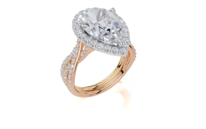 18ct Pear 4.00Carat GH VS1-2 Twisted Claw set Single Halo Earth Grown Diamond Ring