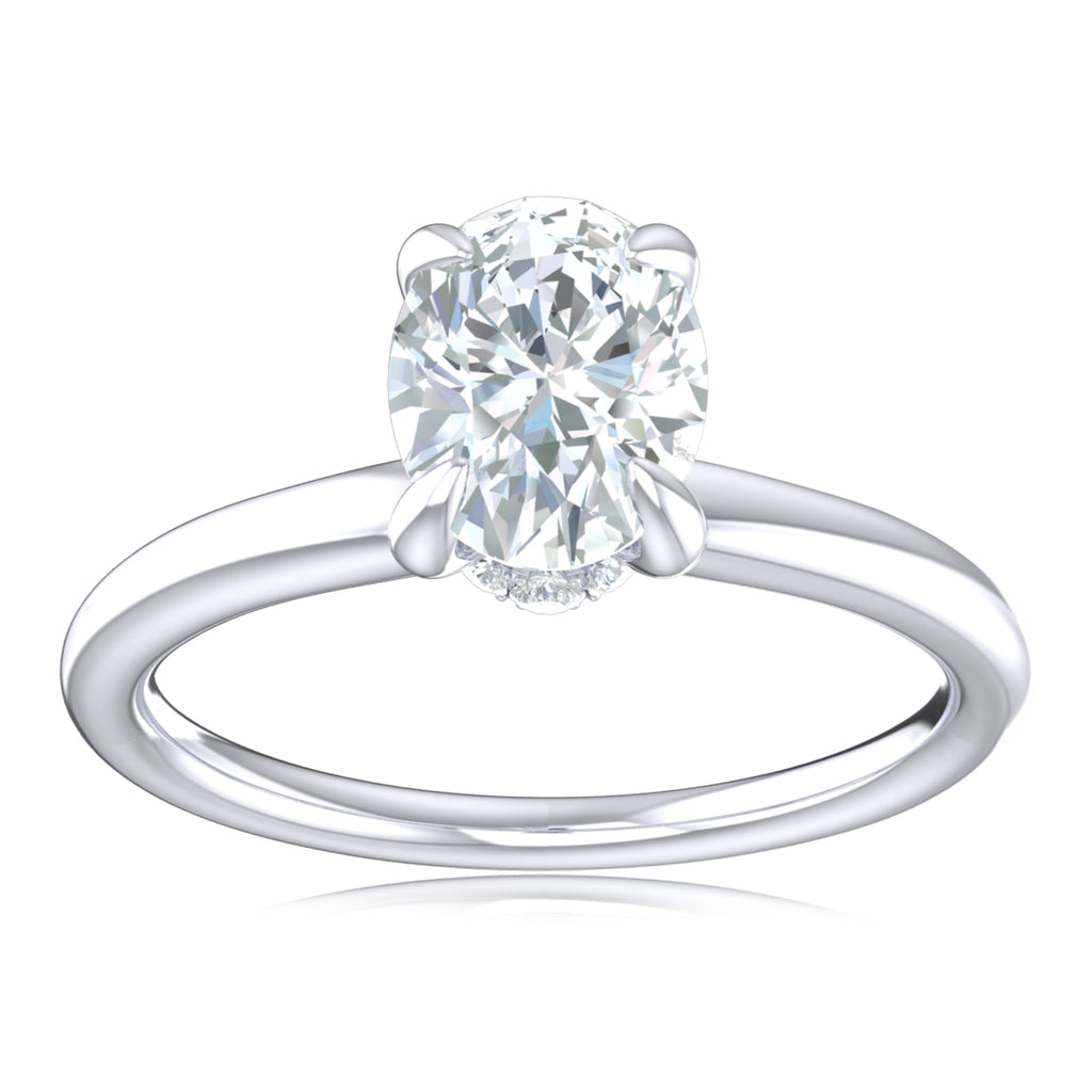 This exquisite 18ct White Gold ring is a luxurious showstopper. Its Oval and Round Cut Lab Grown Diamonds twinkle together for a total of 0.75 carats of pure sparkle and glamour. An exquisite statement piece for any fashionista.