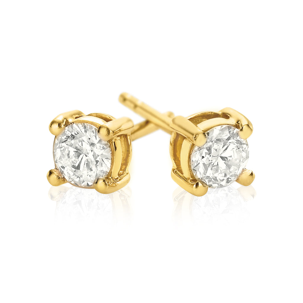 These Classic diamond studs from our Promise Collection features two round brilliant cut diamonds that have a total weight of 1/2 Carat, set with four claws in 18ct Yellow Gold.