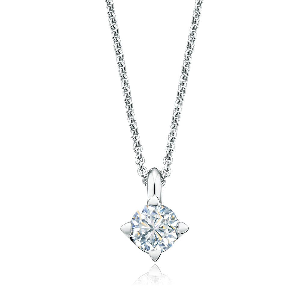 A timeless design, the Forevermark Setting® solitaire pendant has been crafted to fully reveal the beauty of a Forevermark diamond. Held within the Forevermark Setting® Collection's signature four-pronged mount, this setting is designed to elegantly elevate the diamond giving the illusion of floating upon the wearer.