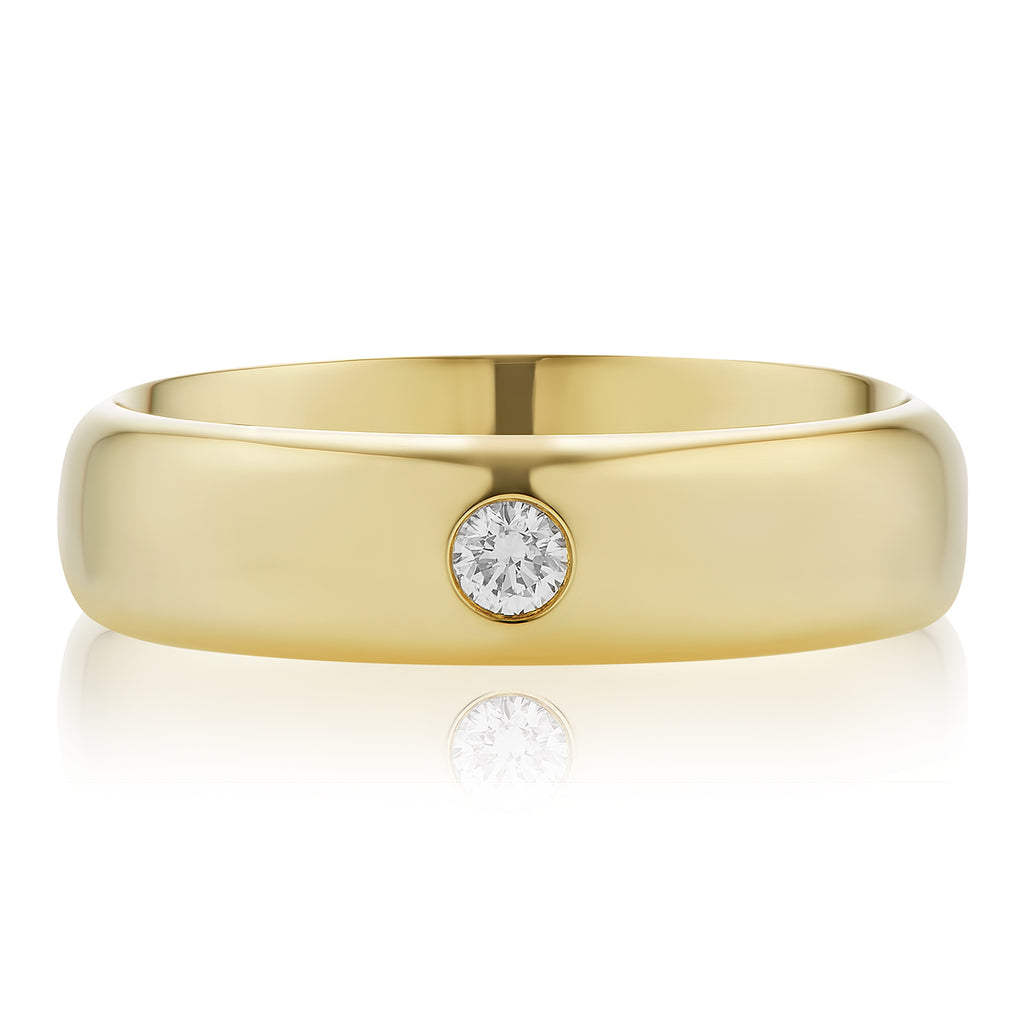 This exquisite Forevermark ring is crafted from 9ct yellow gold, with a round brilliant-cut diamond set in the centre for a touch of subtle sparkle. Adorned with 0.10 CARAT tw of diamonds, it's an elegant and timeless expression of sophistication.