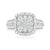 This unique ring crafted in 9ct White Gold showcases a cluster of diamonds wrapped in a frame of baguette cut and round brilliant cut diamonds. Totalling 1 1/2 Carat tw, the shoulders are lined with a double row of diamonds.