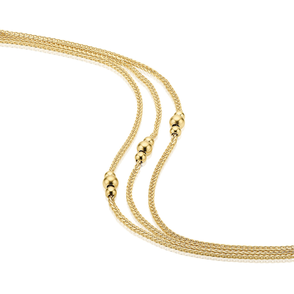 One of our favourite jewellery trends this season is layering gold. This 9ct Yellow Gold multi-layer bracelet features three stylish chains adorned with polished gold beads.