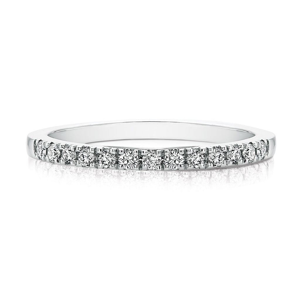 This 18ct White Gold wedding band is set with 0.20 Carat tw of diamonds and is the perfect match to our classic and modern circled Halo engagement ring.