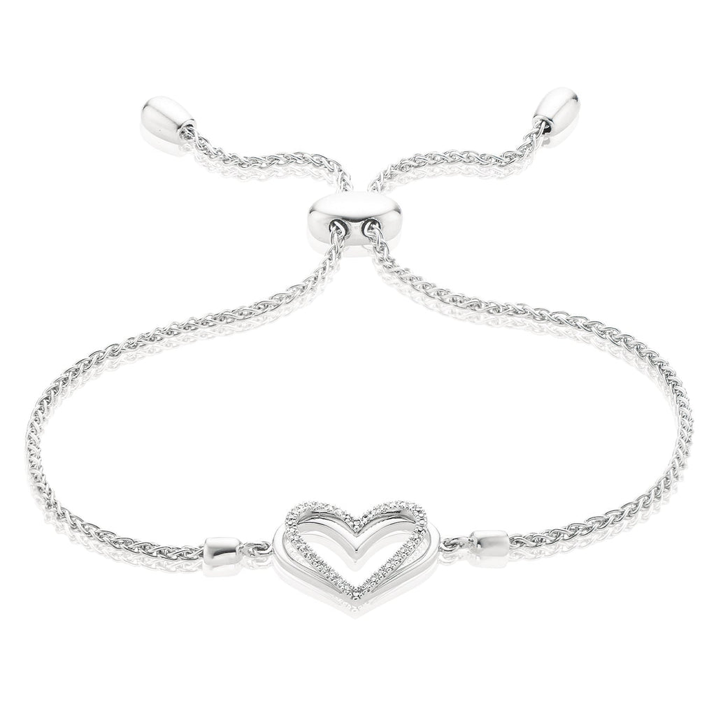 An adjustable bracelet from the Vera Wang LOVE collection, featuring the famous heart outline, studded with diamonds and made with a silver chain and a bolo fastening so you can get the exact length and look you desire. Vera Wang's signature sapphire is hidden at the back of the heart outline, a brilliant symbolic gesture of how love can capture the heart.