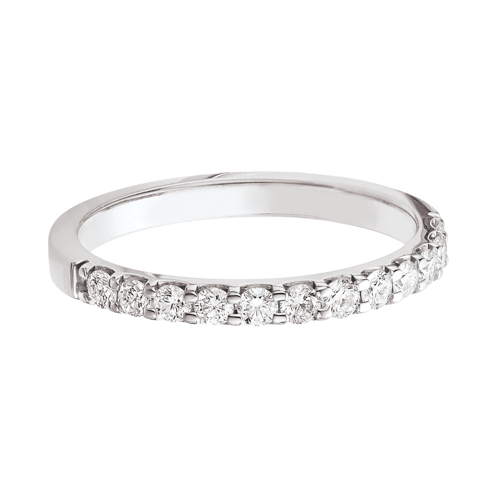Celebrate eternal love with this Diamond Wedding Band. Featuring 1/2 Carat tw of round brilliant diamonds in a claw setting, finished with 18ct White Gold.