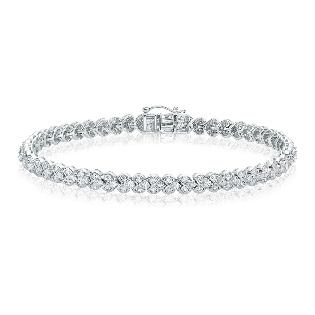 This 9ct white gold bracelet, with its sparkling 2 CARAT tw of diamonds, will add an air of sophistication to any ensemble. The classic round brilliant cuts reflect light beautifully, creating an elegant, timeless piece to treasure for years to come.