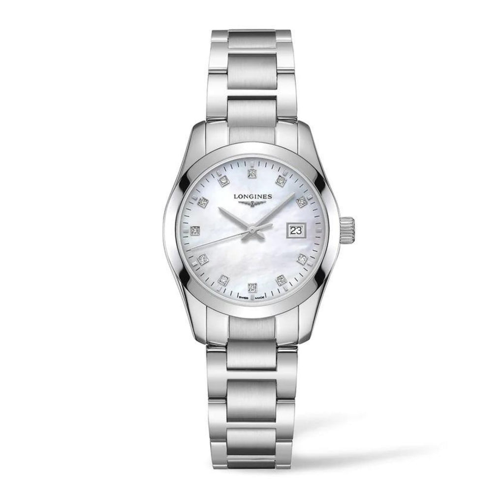 Longines Conquest is the quintessential expression of the brand's sporting elegance. Special attention went into the aesthetics of the bezel, the cabochon, crown and the links. A subtle blend of performance and elegance, the Longines Conquest includes technical features that meet the requirements of the most demanding sportsmen and women. Both sober and sophisticated, these models are guaranteed to catch the eye at the most fashionable soirées as well as in the stands of prestigious horse races.