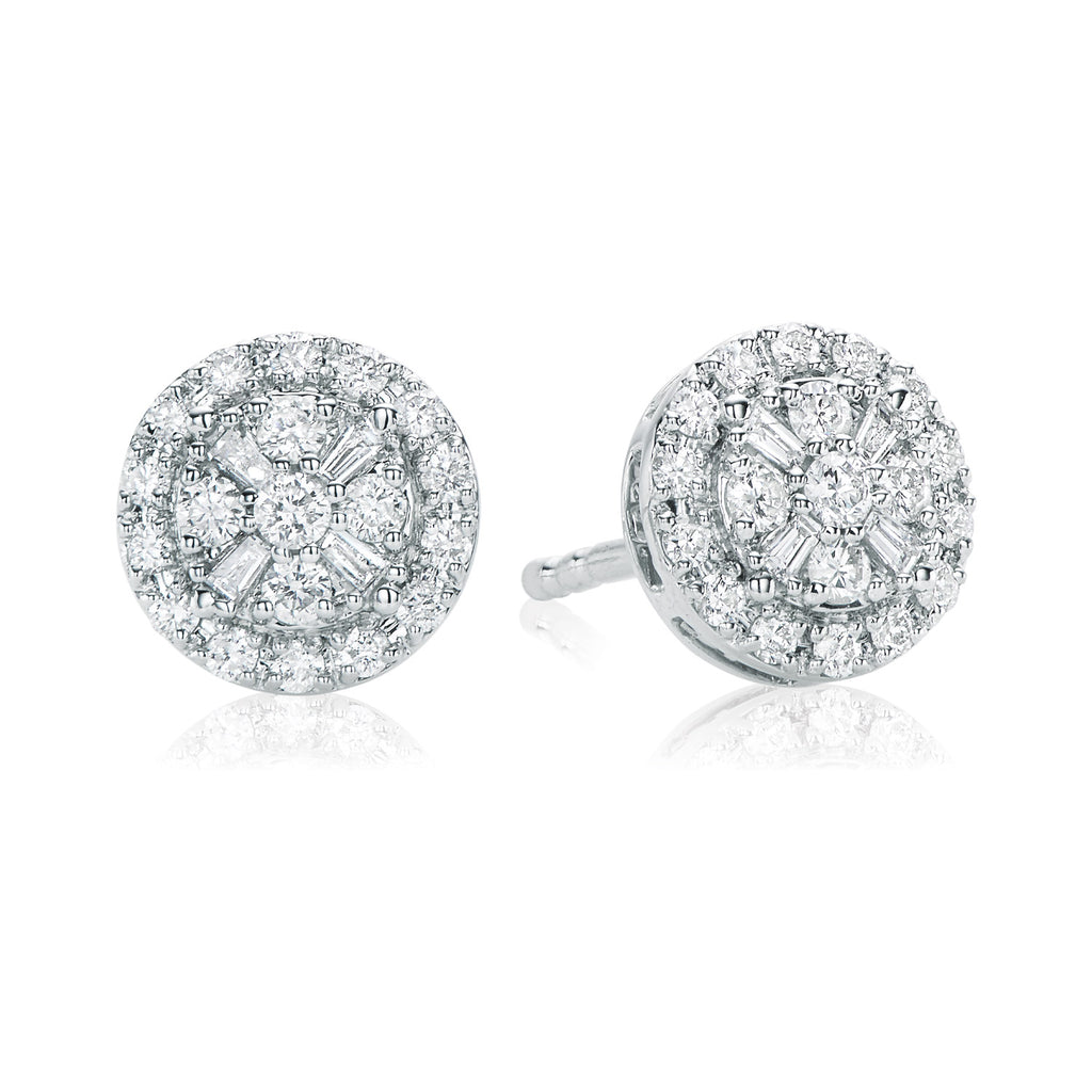 9ct White Gold Round Brilliant & Baguette Cut with 1/3 Carat tw of Diamonds Earrings