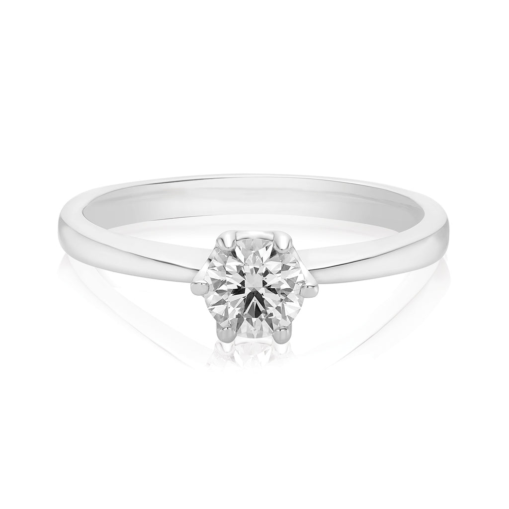 Modern, Minimal and Chic. This 1/2 Carat Premium Solitaire ring from our Promise Collection is held by six claws and set in an 18ct White Gold, knife edge band. Our Premium Solitaires come with their own unique GIA certification.
