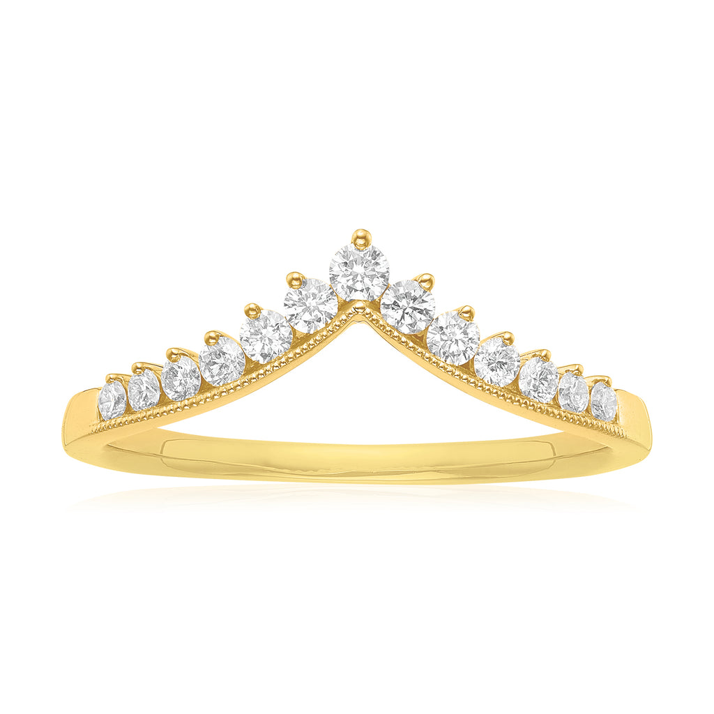 18ct Yellow Gold Round Brilliant Cut 0.25 ctw Contoured Dress Ring