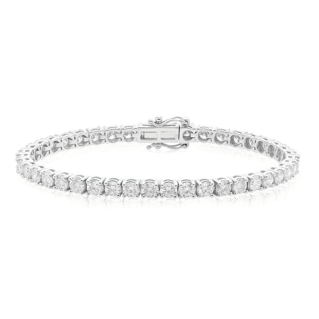 This iconic 10ct White Gold Tennis Bracelet features 8 Carat tw of round brilliant cut diamonds for an elegant look to light up the night.