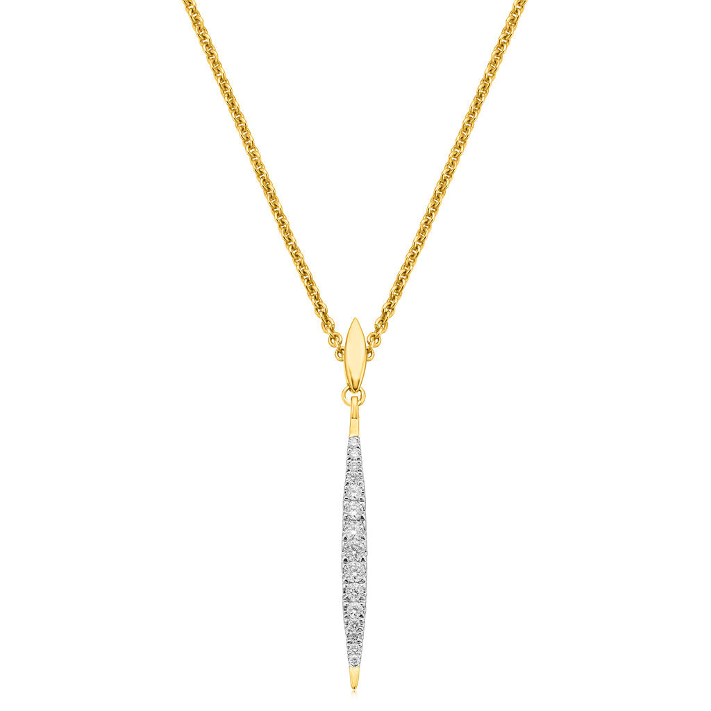 This sparkling 9ct Yellow Gold pendant is delicately designed with 0.20 CARAT tw of round Brilliant Cut Diamonds. Pair with matching earrings to flaunt a polished outift.