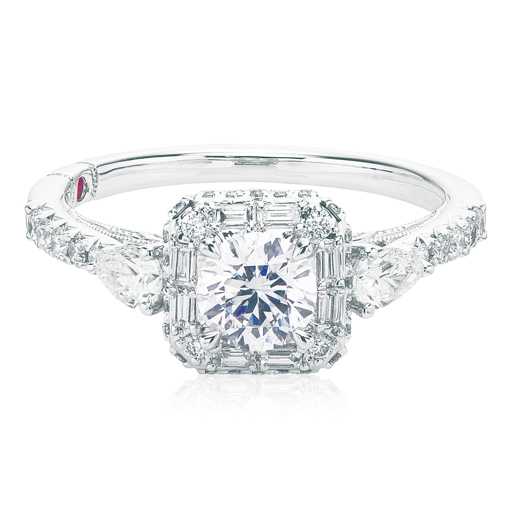 Royale Platinum Round Brilliant, Baguette, & Pear Cut 1 1/2 CARAT tw of Diamonds Ring