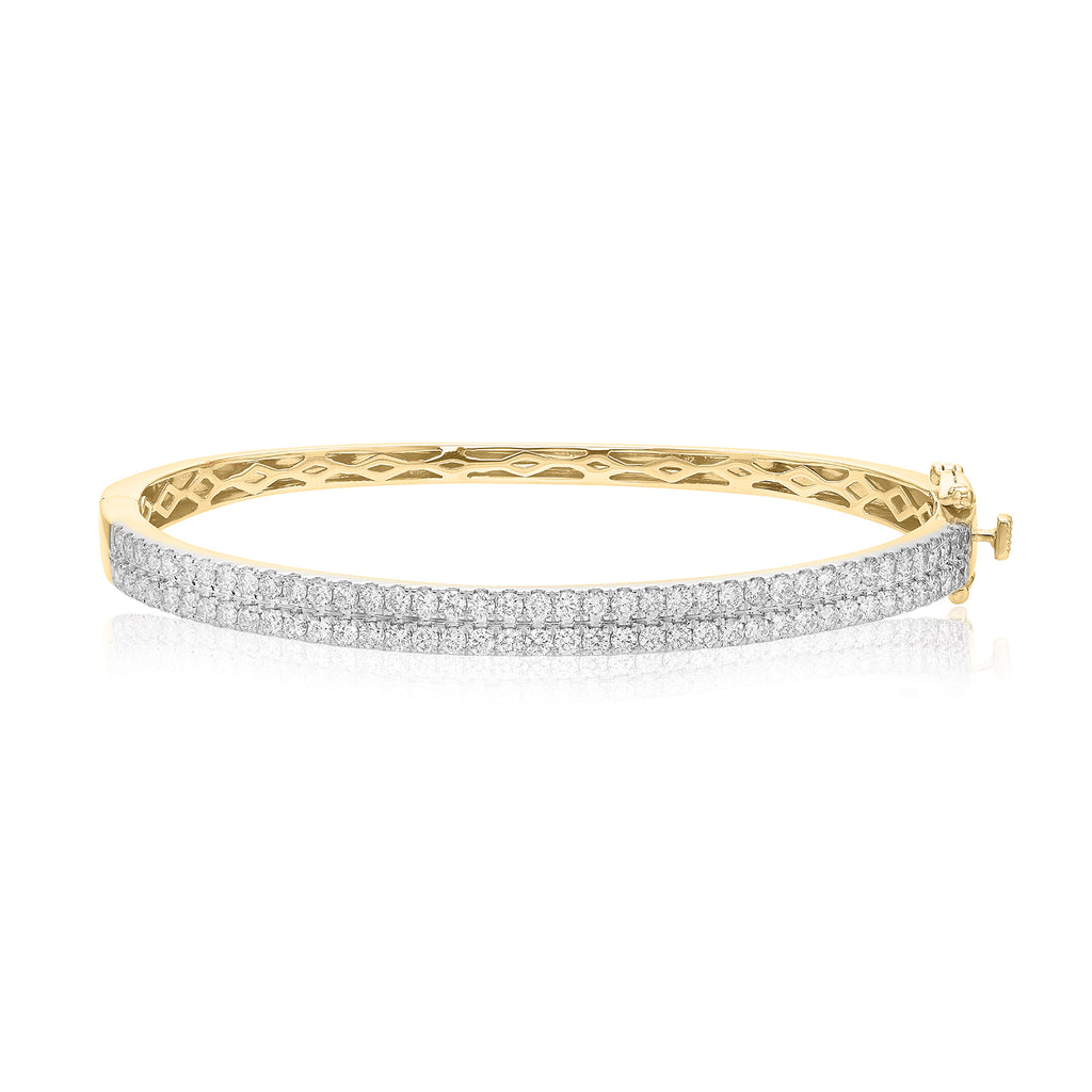 Feel luxurious with this 9ct Yellow Gold bangle, embellished with rows of lavish Diamonds totalling 2 Carat tw. This lustrous bangle is queenly in nature and is a perfect gift to show your love.